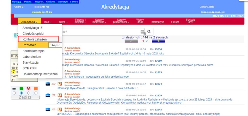 Procedura postępowania – znajduje się w dziale akredytacja | kontrola zakażeń