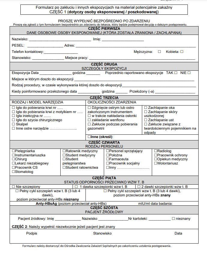 Postępowanie w przypadku zranienia ostrym narzędziem